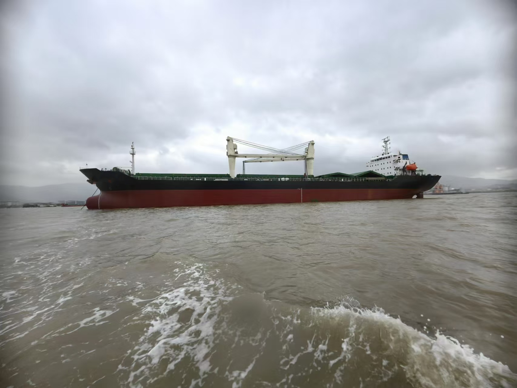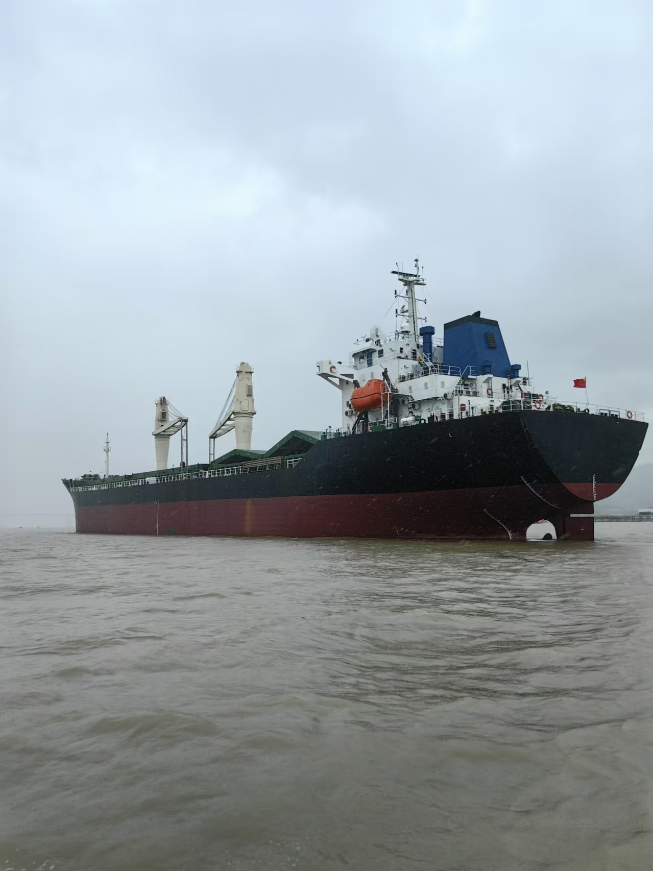 该船目前在航,为内改外散杂货舱,BWTS已安装,配备2台30吨克令吊。
