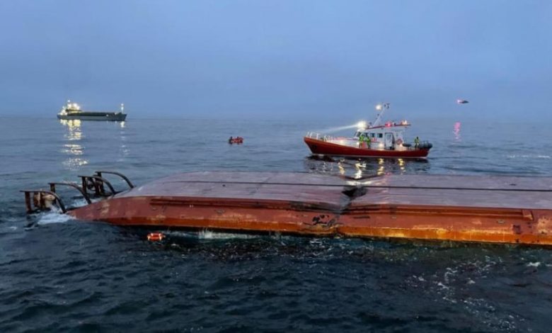 One of two Danish crew members missing from a capsized barge has been found dead in the hull after an overnight collision on Monday with a British cargo vessel in a busy Baltic Sea route off Sweden.